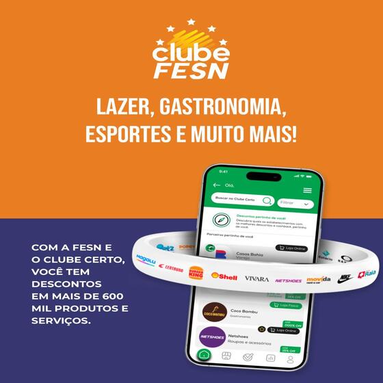 Quer mais? Com o Clube FESN, você tem acesso a descontos especiais em lojas, restaurantes e muito mais!